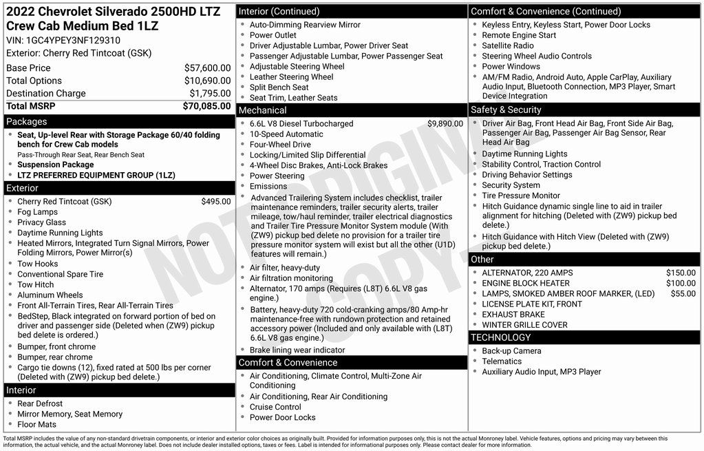 2022 Chevrolet Silverado 2500HD LTZ LTZ Cherry Red Tintcoat Duramax 6.6L V8 Turbodiesel 10-Speed Automatic 4WD