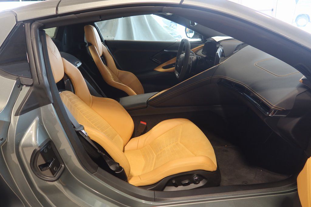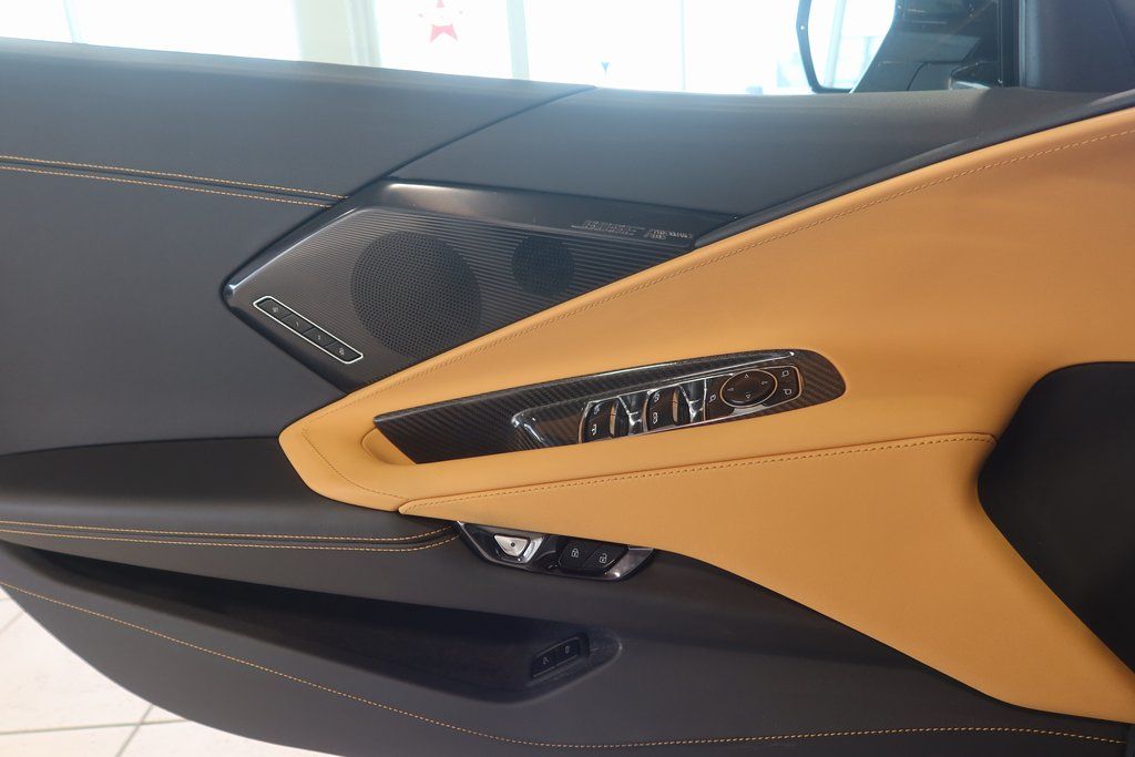 Step inside and you'll be greeted by the Corvette's exquisite Stealth Interior Trim Package, featuring a carbon fiber cluster-surround and console/door switch plates, as well as a sueded microfiber-wrapped steering wheel. The GT2 bucket seats provide exceptional comfort and support, while the Front Lift Adjustable Height with Memory function ensures a seamless entry and exit.
