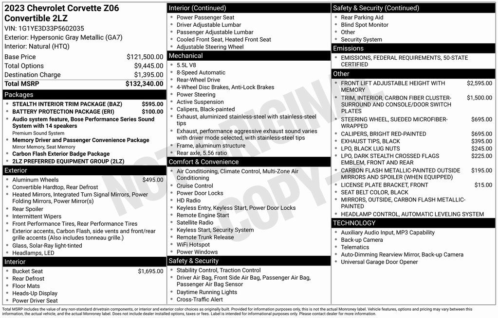 Whether you're seeking the ultimate thrill on the open road or a head-turning presence in the city, this 2023 Chevrolet Corvette Z06 2LZ is the perfect choice. Experience the pinnacle of American sports car engineering and schedule a test drive today. We look forward to helping you discover the true power and passion of the Corvette.
