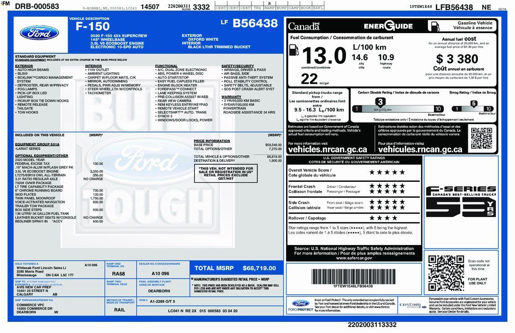 This 2020 Ford F-150 Lariat is an exceptional choice for those seeking a capable and well-equipped full-size pickup. With its striking Star White Metallic Tri-Coat exterior, this F-150 commands attention on the road. Powered by a potent 3.5L V6 EcoBoost engine mated to a smooth-shifting 10-Speed Automatic transmission, this 4WD truck delivers impressive performance and efficiency, boasting 16 city and 22 highway MPG.